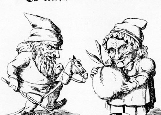 Nisserne på billedet er: Illustration til H. C. Andersens eventyr ”Nissen hos spækhøkeren” (1853)